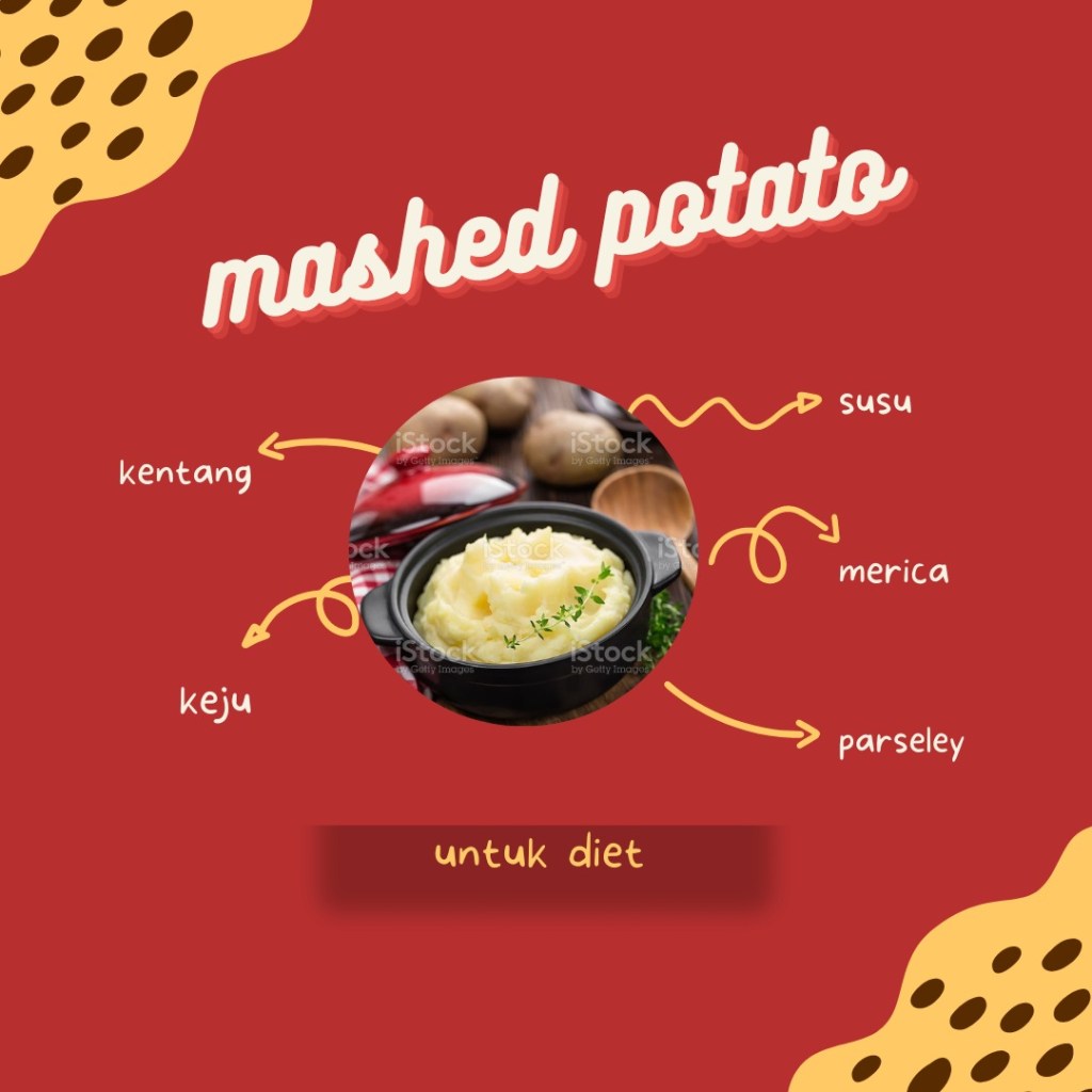 Untuk program diet, mashed potato bisa dimakan dengan lauk pendamping yang juga sehat, seperti sayur dan olahan dada ayam. Kalau mindi, biasanya cukup satu porsi mashed potato + bawang goreng sudah nikmat, tidak perlu campuran lain. Nah, sekarang kalian bisa mulai membuat mashed potato ini dirumah untuk menemani program diet kalian ya.