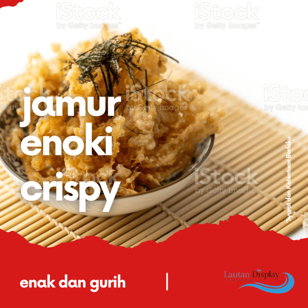 Sejak dulu, jamur enoki ini sudah dimanfaatkan untuk pengobatan tradisional maupun diolah jadi makanan. Jamur enoki sendiri punya rasa dan tekstur yang nikmat. Jamur ini bisa dimasak jadi beef rolls enoki, sup jamur enoki, tumis jamur enoki, jamur enoki siram, maupun jamur enoki goreng. Nah, jamur enoki goreng ini bisa dibilang paling mudah dibuat. Hanya memakai bahan dasar jamur enoki ditambah tepung bumbu serbaguna, sudah bisa jadi camilan lezat. Biar lebih bervariasi, tambahkan berbagai saus maupun bumbu tabur.
