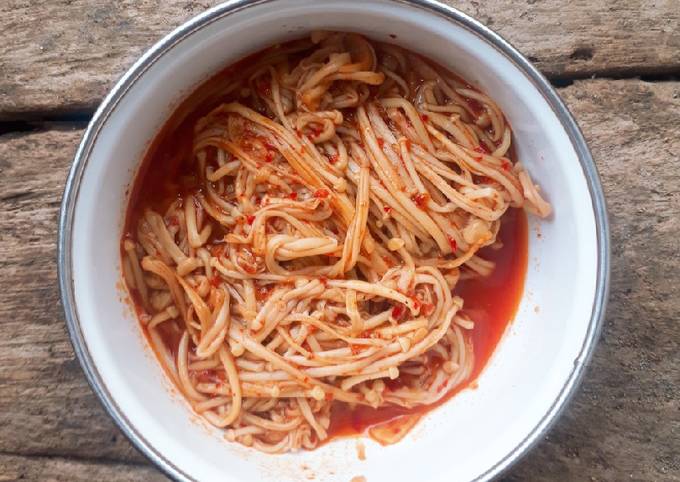 Kali ini mindi akan mengajak kamu memasak jamur enoki pedas. Di musim penghujan yang dingin, kita perlu menghangatkan perut dengan sajian masakan pedas dan berkuah. Jadi, menu jamur enoki pedas bisa masuk list masakan kamu hari ini. Karena cuacanya mendukung banget, apalagi kalau kamu lagi pusing dan ambyar akibat pekerjaan. Memasak dan memakan jamur enoki pedas akan merefresh emosi kamu, percaya deh.