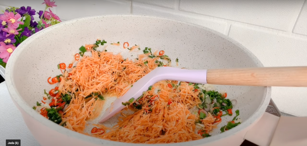 - Iris halus semua bahan, mulai dari bawang merah, bawang putih, cabai, daun bawang, dan wortel