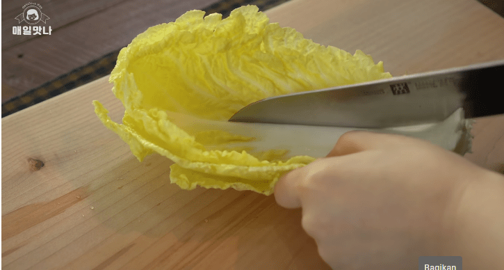 - Cuci bersih 3 lembar daun kubis atau kol. Kemudian tiap lembar dibagi 2 dan dipotong menyerong menjadi banyak potongab berukuran sedang. Sisihkan