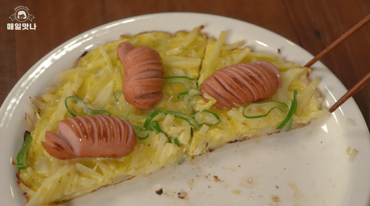 Ada dadar telur sosis kentang yang popular di negeri ginseng. Meski buka top satu atau paling popular, sajian ini masih layak untuk dicoba. Karena bahan dasarnya ringan dan banyak ditemukan di Indonesia, jadi akan sangat mudah diadopsi. Resep masakan ini juga tidak memerlukan bumbu-bumbu rumit atau aneh. Selayaknya dadar telur di Indonesia saja, bedanya hanya cara memasak dan bahan-bahannya saja.