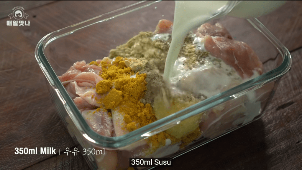 Pertama, marinasi atau asinkan dahulu ayam.