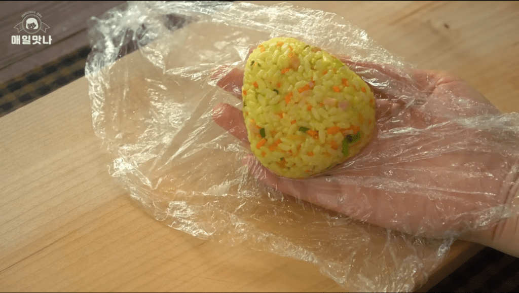- Gulung plastik dan satukan nasi agar menutup keju di dalamnya.