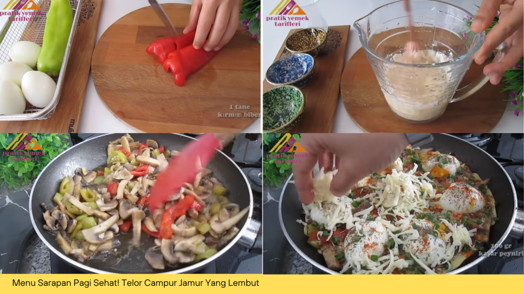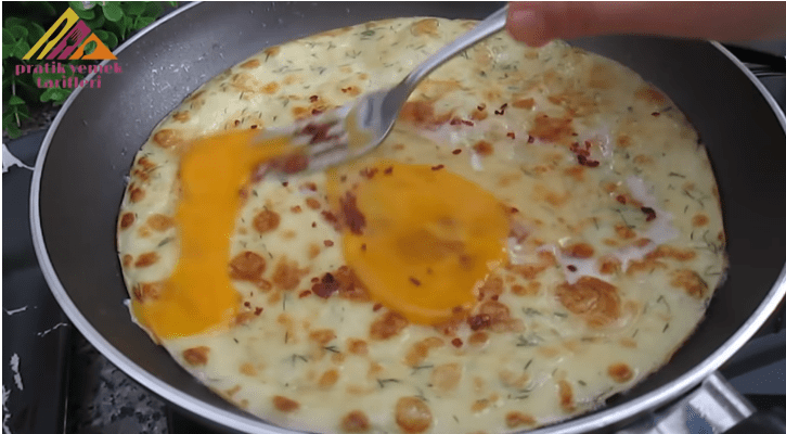 - Lalu pecahkan 1 butir telur di atasnya. Biarkan saja telurnya, tak perlu diaduk agar setengah matang. Namun jika kamu tidak suka, boleh diaduk.